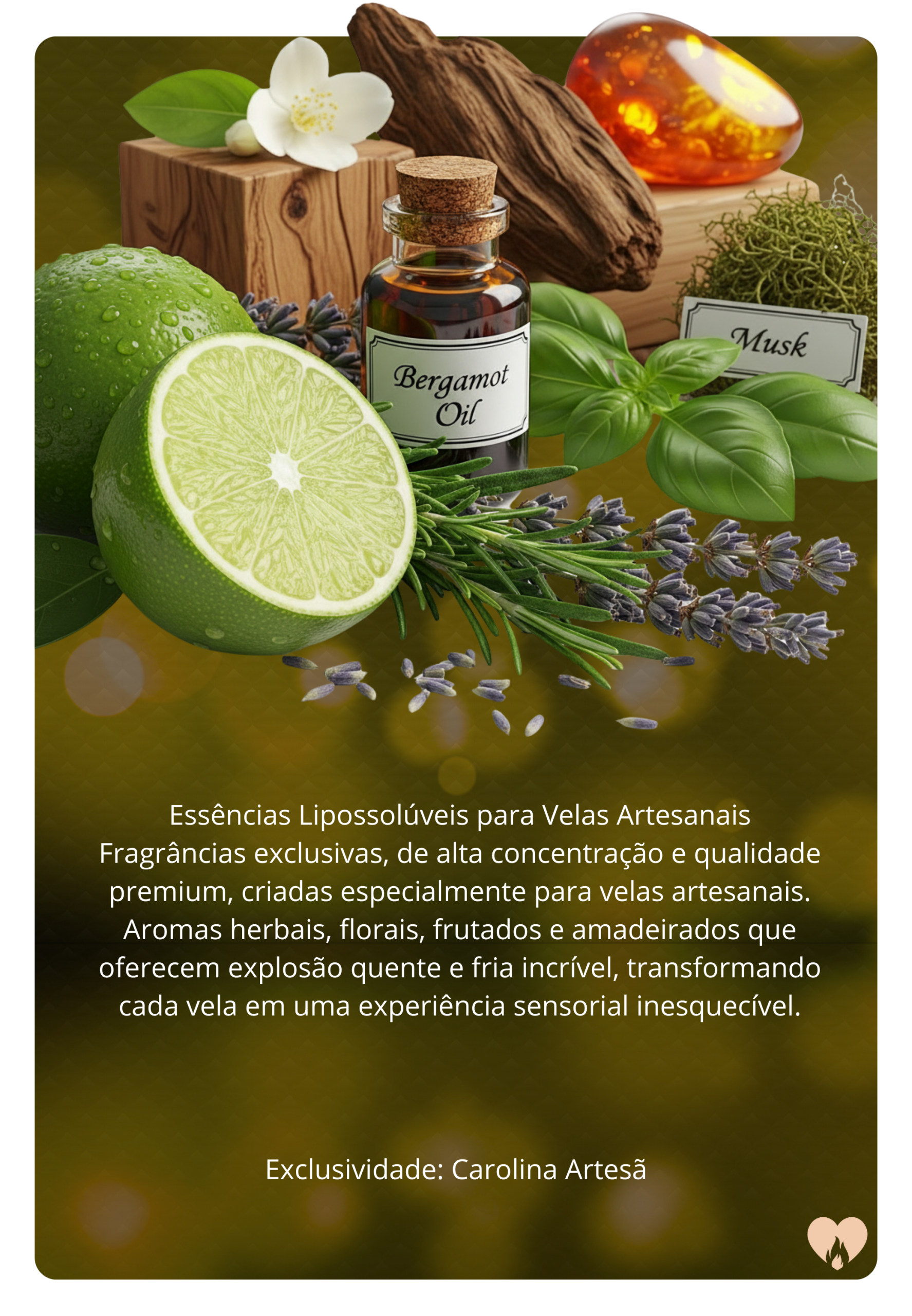 especialmente para velas artesanais. Aromas herbais, florais, frutados e