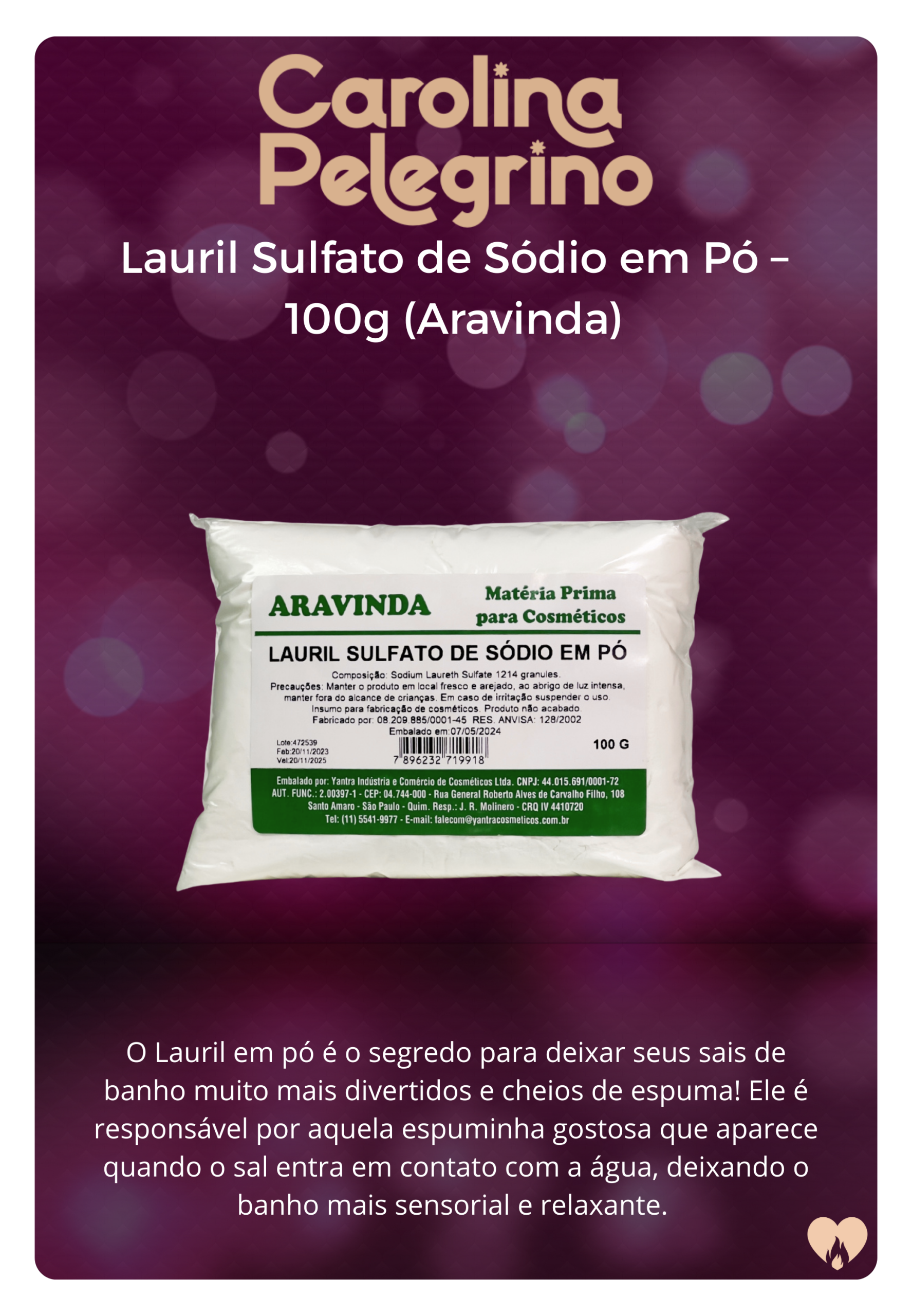 Lauril Sulfato de Sódio em Pó – 100g (Aravinda)