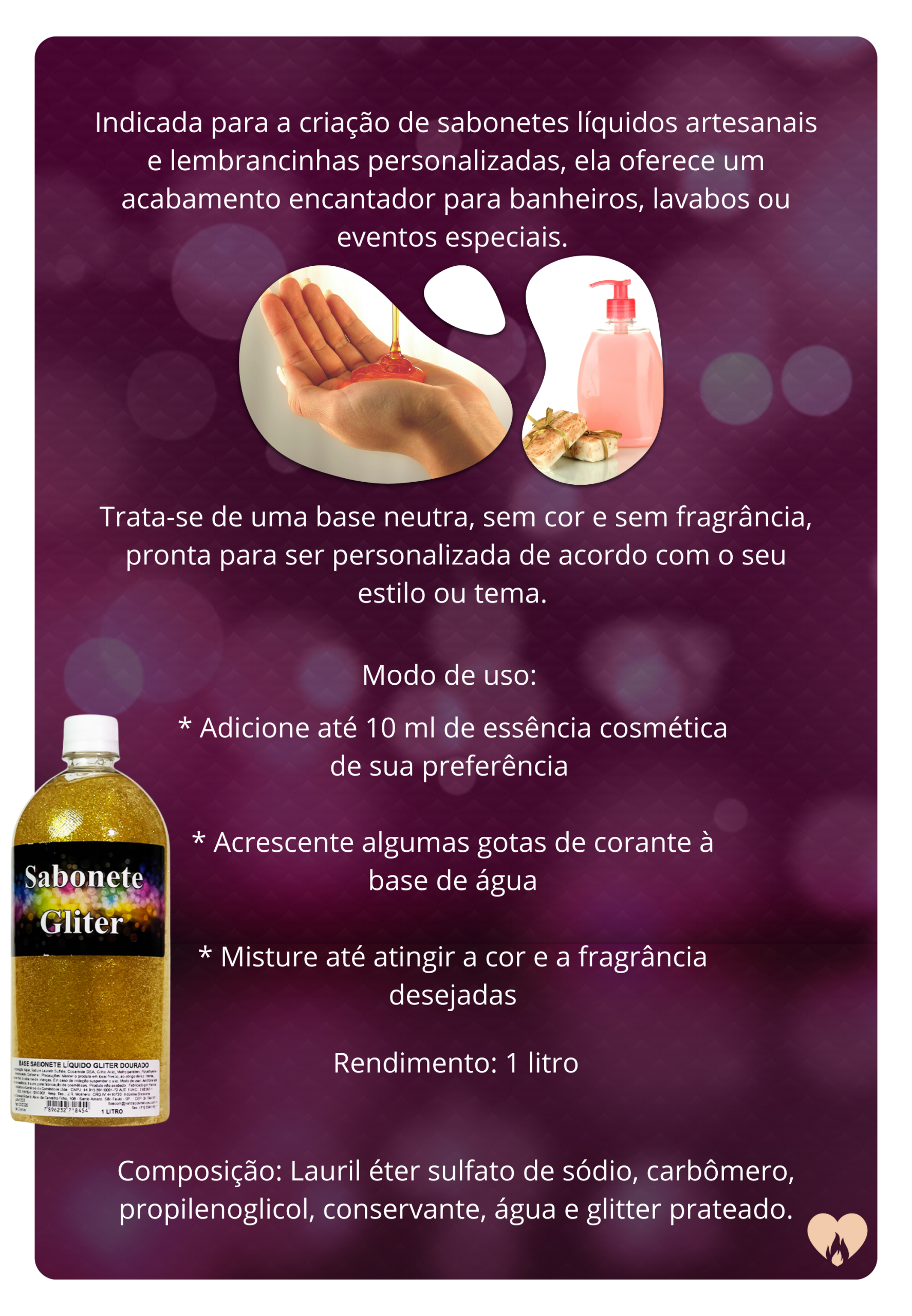 A base de sabonete em gel com glitter é a escolha ideal para quem busca sofisticação e