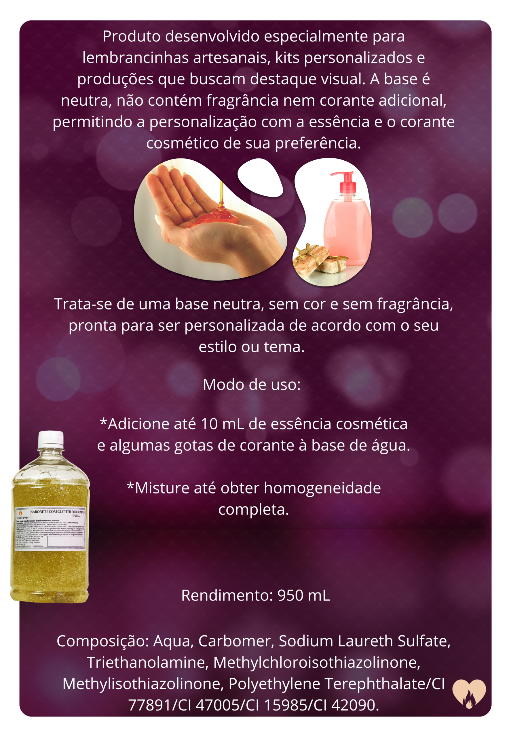 e personalizado na criação de sabonetes líquidos artesanais. A textura em gel garante um
