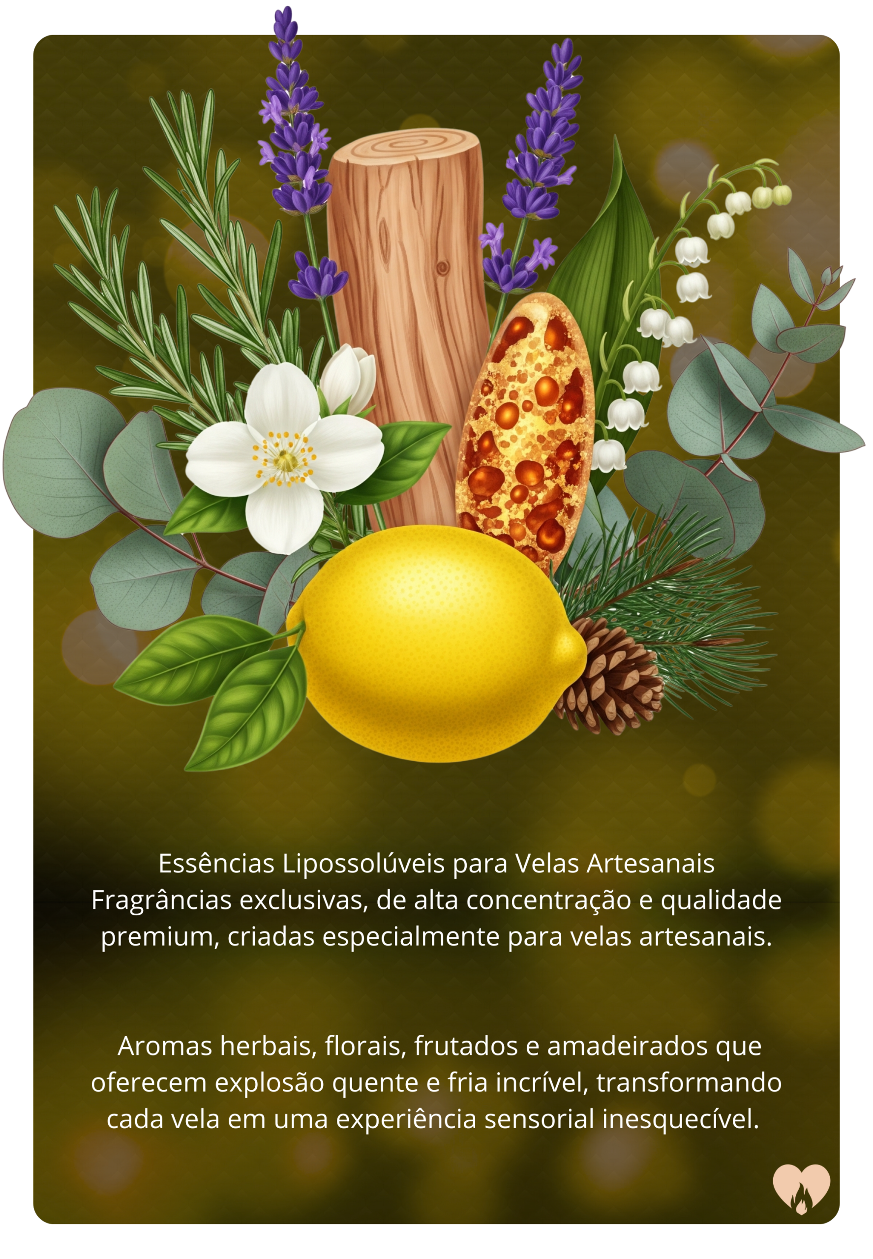 especialmente para velas artesanais. Aromas herbais, florais, frutados e